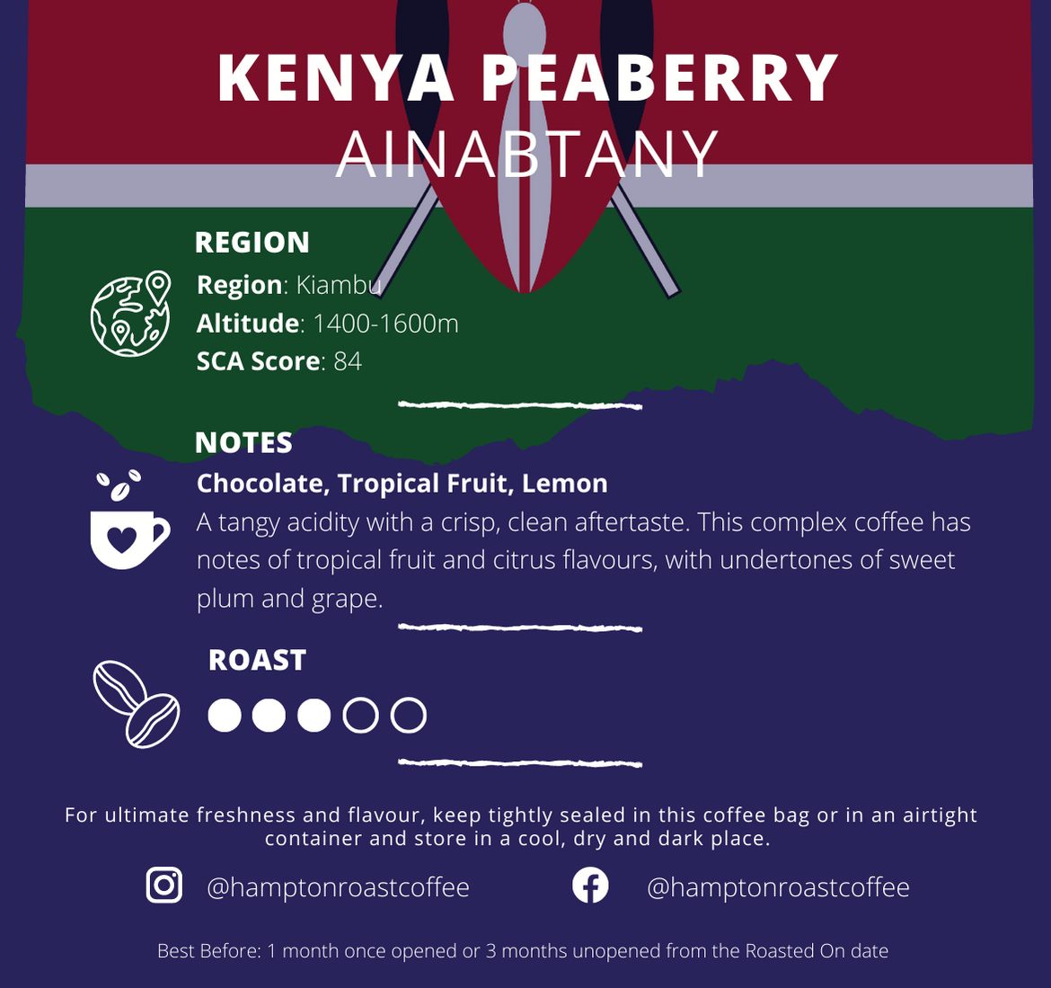 A tangy acidity with a crisp, clean aftertaste. This complex coffee has notes of tropical fruit and citrus flavours, with undertones of sweet plum and grape.Origin: Kenya